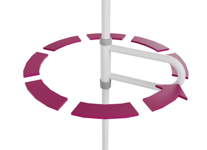 While pivoting the bar with one hand, you stay supported thanks to the sturdy vertical pole that offers continuous stable contact for the other hand or the body. More stability, at all times, even when pivoting the bar.