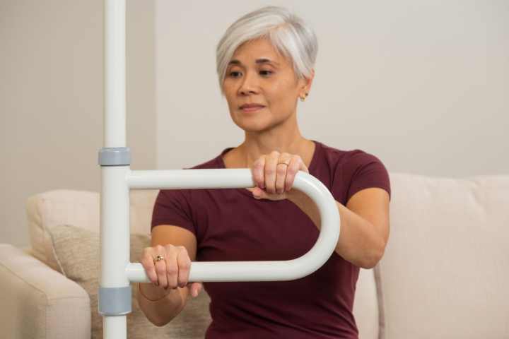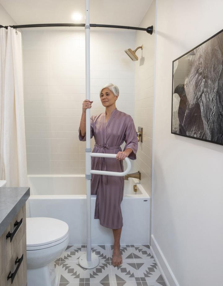 The uPole installs exactly where support is needed in any room. It provides ultimate flexibility in placement because no wall is needed. It is a secure tension fit between floor and ceiling, and no drilling is required. Whether beside a bed, tub, or favorite living room chair, it puts a grab bar exactly where you need it and maximizes independence.